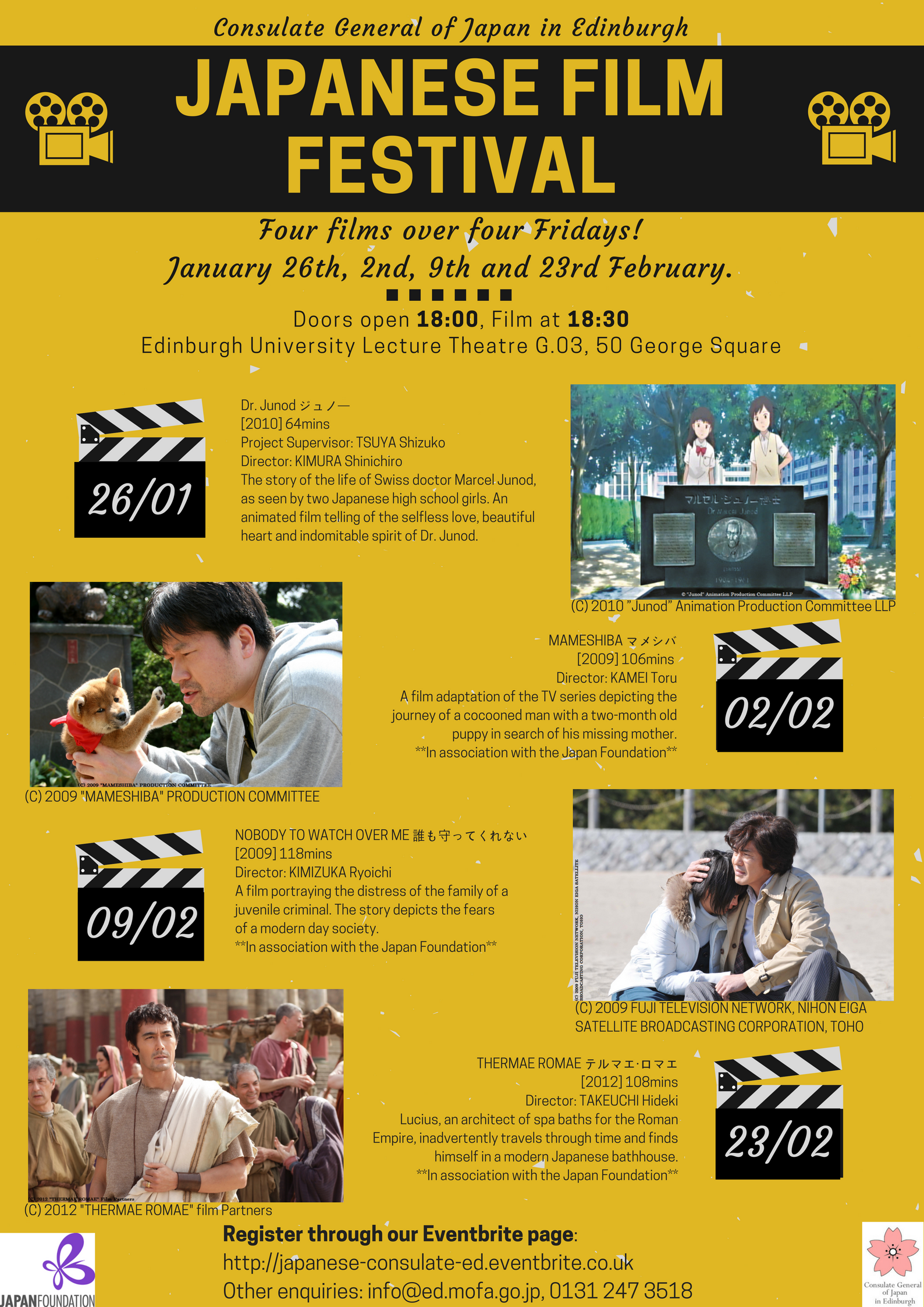 “Japanese Film Festival” sponsored by Consulate General of Japan in Edinburgh was kicked off. Anime “Junod” was screened on January 26, 2018 as the first screening.
